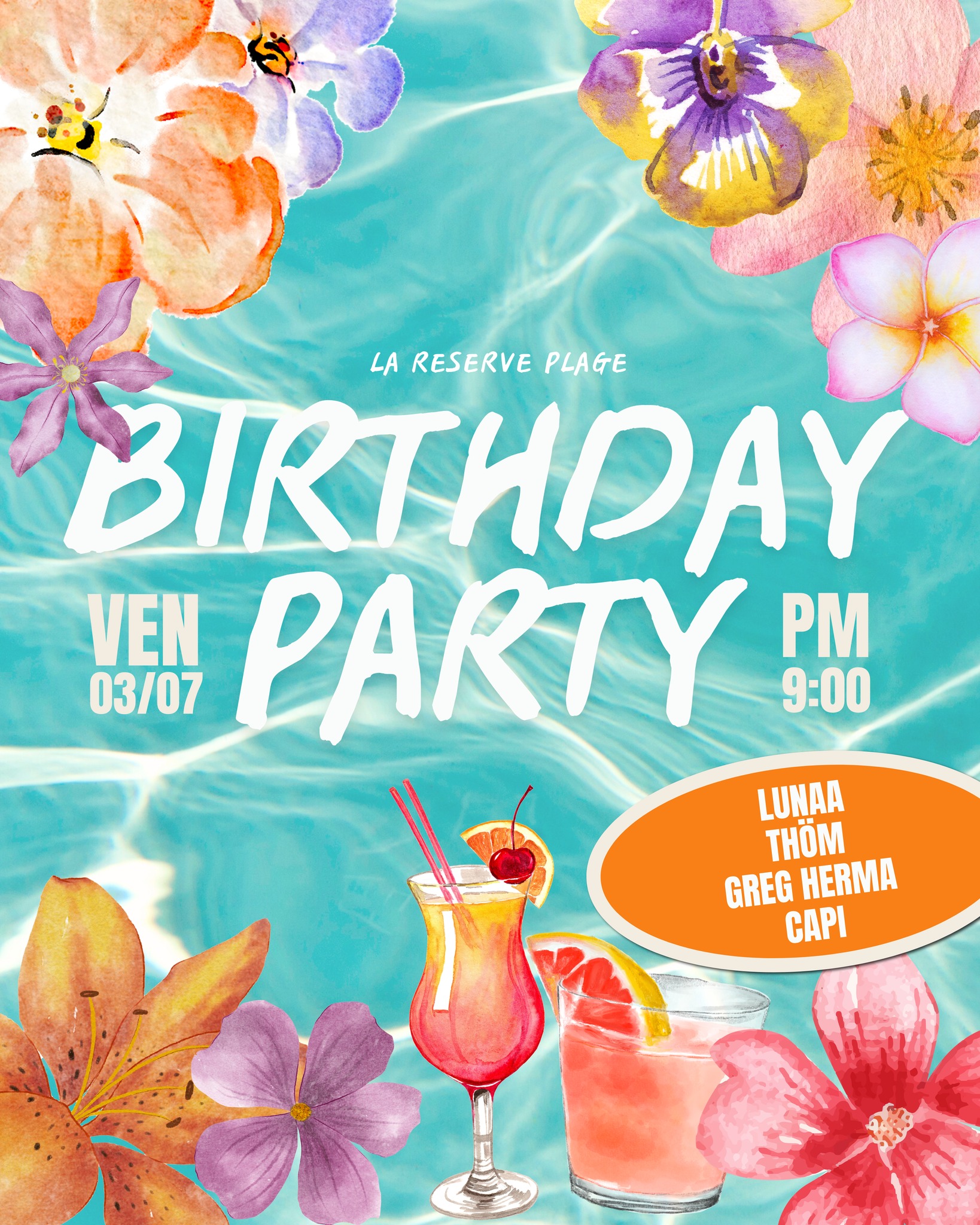Cet été, La Réserve vous donne rendez-vous pour ses soirées incontournables. Des nuits qui commencent au coucher du soleil, des sets qui montent, une énergie qui ne redescend pas… Chaque soirée a son histoire, et vous en faites partie. BIRTHDAY PARTY ▫️Vendredi 03 juillet ▫️21h00 ▫️Lunaa, Thöm, Greg Herma, Capi