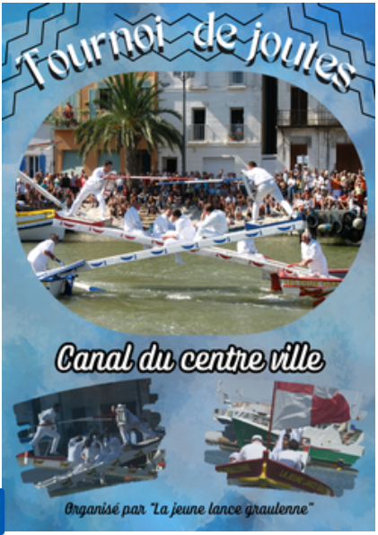 Venez découvrir un tournoi de joutes dans le canal du centre ville par les élèves de l'association de la jeune lance graulenne. Le samedi 9 août à 14h. Suivi du tournoi Régional chariots