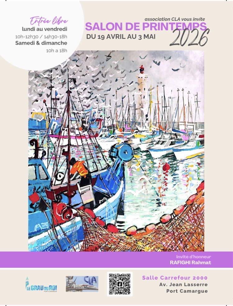 Le Salon du Printemps revient encore une fois cette année pour exposer des œuvres diverses et variées. « Artiste peintre, Rahmat RAFIGHI saisit la vie sur le vif. Chevalet au cœur de la scène, il croque avec spontanéité, passants, joueurs et instant du quotidien à travers le dessin et la peinture. » Vernissage le vendredi 24 avril à 18h30 Invité d’honneur : artiste peintre RAFIGHI Rahmat
