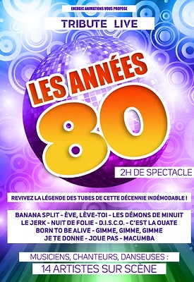 Revivez la folie des « années 80 » avec un orchestre accompagnés de ses chanteuses, chanteurs, danseuses et musiciens. 2 heures de spectacle qui vous feront replonger au cœur des années 80 !