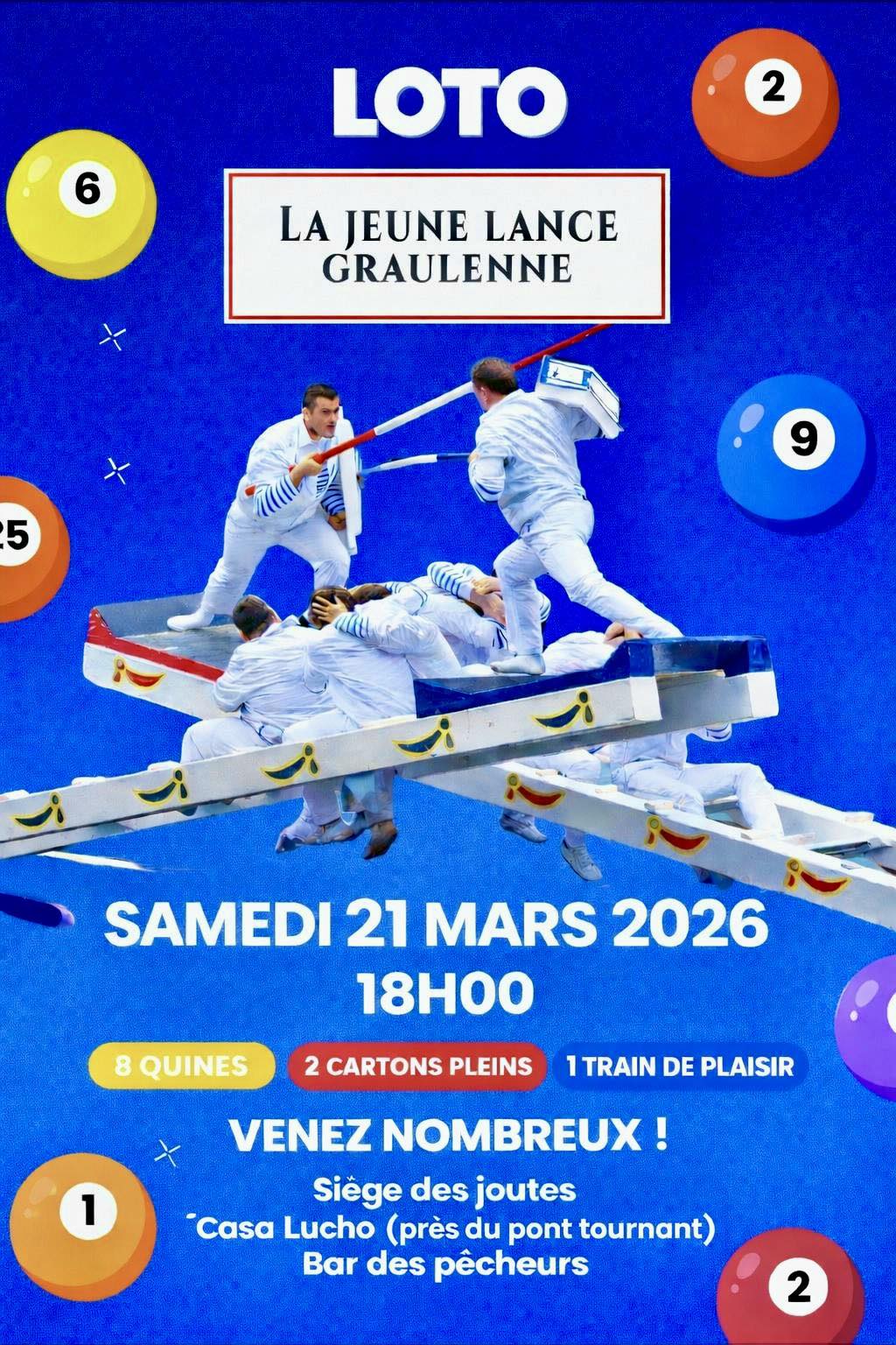 Venez participer au loto de la jeune lance Graulenne le 21 mars à 18h00 8 quines 2 cartons pleins 1 trains de plaisirs