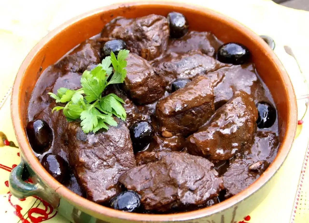 La gardiane de taureau, plat traditionnel des gardians, est un ragoût mijoté longuement avec du vin rouge, des herbes et des olives, offrant une explosion de saveurs authentiques.