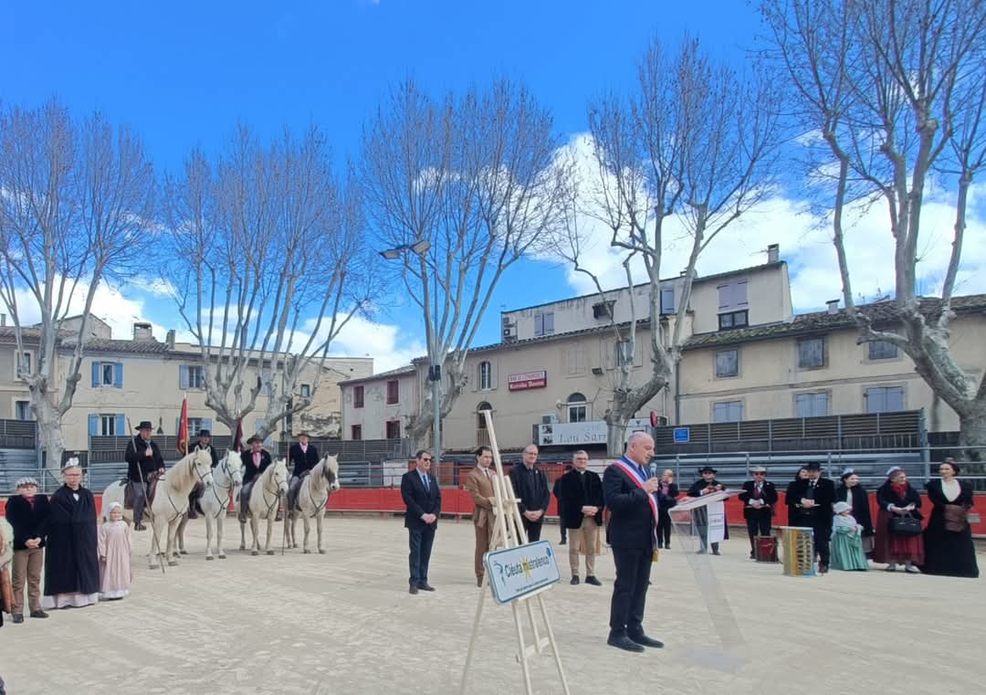 En mars 2025, la commune a obtenu le label « Ciéuta mistralenco« , une reconnaissance forte de son engagement envers la langue provençale et la culture camarguaise. Cette distinction a été matérialisée par la pose d’une plaque commémorative sur le rond-point du Monument aux Morts. A cette occasion, un hommage a été rendu au Majoral du Félibrige saint-laurentais, Clément Auzière.